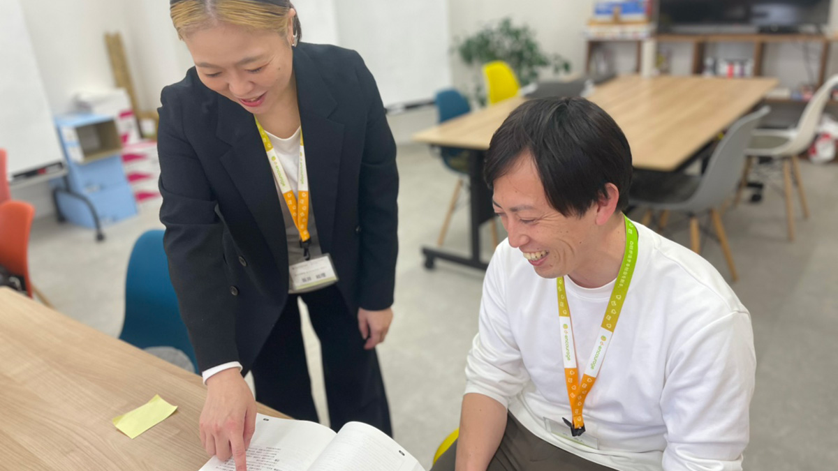 ディーエンカレッジ金山キャンパスでは、面談やクラスを通して、利用者さん一人ひとりに寄り添い、理解しながら、適切な支援計画を立てています。座学形式のクラスでは、一方的な講義形式にならないように、対話形式で工夫しながら実施しています。また、より多くの方に自立訓練について知ってもらうために営業活動も行っています。